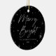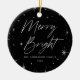 Modern Merry and Bright Script Black Photo Ceramic Ornament