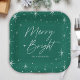 Modern Merry and Bright Script Green Holiday Paper Plates