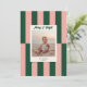 Modern Merry & Bright Pink & Green Stripes Holiday Card