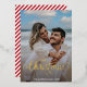 Modern Merry Christmas Family Photo Name Stripes Foil Holiday Card