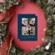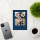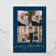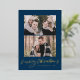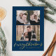 Modern Merry Christmas Gold Script Navy 3 Photo Foil Holiday Card
