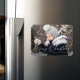 Wish friends and family a Merry Christmas with a cute holiday photo magnet! The magnet features your horizontal photo with subtle snow flurries bordering the design. "Merry Christmas" is displayed in a white, trendy calligraphy script with your family's name below.