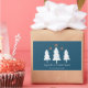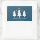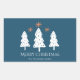 Modern Merry Christmas Trees and Stars Blue Rectangular Sticker