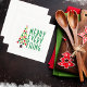 Modern and minimalist style holiday design features Christmas tree with red and green ball ornaments, green "Merry Every Thing" text and white background.