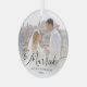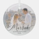 Create your own custom personalized wedding photo keepsake ornament featuring one photo, the title MERRY AND MARRIED in an elegant calligraphy script typography with your name and year in your choice of text colors (shown in black against a white ombre photo overlay) to coordinate with your picture. ASSISTANCE: For help with design modification or personalization, color change, resizing or transferring the design to another product, contact the designer BEFORE ORDERING via the Zazzle Chat MESSAGE tab below or email makeitaboutyoustore@gmail.com.