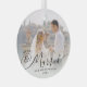 Modern Merry Married Christmas Photo Black White Glass Ornament