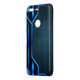 Modern abstract, blue and black, mesh metal look sport design.