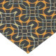 A beautiful, intricate, geometric design of and orange and greyish blue Celtic knot over a black background, with a modern, metallic texture.