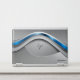 A sleek contemporary design with a sporty, masculine professional look in silver, gray and blue metallic curves with a mesh pattern accents. Personalize this laptop skin with your name, company logo, business name or other desired text.