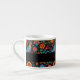Modern espresso cup with a colorful Mexican pattern and an orange script name. Personalize name.