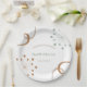Simple yet classy modern wedding party paper plates; inspired by modern mid century designs it features atomic starbursts and shapes in trending earth tones of rust, light green, white and a lovely pinky beige.