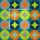 Very stylish and on trend design with a big circle repeat tile pattern; inspired by mid century retro graphics. Fabulous mix of colors in grey, teal blue, lime green, orange.