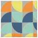 Very stylish and on trend design with quarter circle repeat tile pattern; inspired by mid century retro graphics. Fabulous mix of colors in grey, teal, blue, golden yellow, orange.