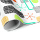 A trendy clean fresh modern geometric funky shapes design inspired by retro mid century patterns in on trend shades of bright green, orange, turquoise blue, yellow, gray, black and white. A cool design for gift wrapping or craft and restoration projects