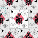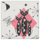 A super cute pattern of black cats, atomic starbursts and abstract shapes inspired by retro mid century designs in on lovely tones of pink, black, white and grey.