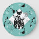 A super cute pattern of black cats, atomic starbursts and abstract shapes inspired by retro mid century designs in on lovely tones of teal, blue, black and grey.