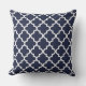 Modern Midnight Blue and White Quatrefoil Pattern Throw Pillow