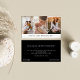 Clean, modern and minimal photography business card. Customized with your own three images, cute white heart are added between the images. Customize with your business name. The reverse side features an all back background with business name, contact info, social media icons and social handle.