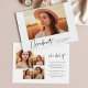Announce your graduation with our Modern Minimal Script 5 Photo Collage Graduation Announcement Card. Featuring an elegant and modern script font and a minimalistic design, this announcement card is perfect for high school and college graduates. The 5 photo collage layout adds a personal touch and makes it a memorable keepsake for you and your loved ones. Celebrate your achievements and let everyone know about your big day with this announcement card. Order now and customize with your graduation details and photos to make it truly unique.