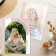 This modern graduation announcement features a trendy arched photo. The design is accented with a light dusty pink color and handwriting style text. The backside offers a full photo with custom text for your graduation and future plans details.
