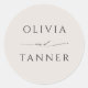 Modern Minimal Beige Bride and Groom Names Classic Round Sticker