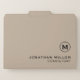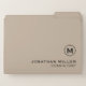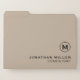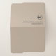 Modern monogrammed beige design with stylized black and beige monogram medallion in classic block typography with personalized name and title below on a simple beige background. Personalize for your custom use.
