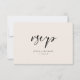 Modern Minimal Beige Script Wedding RSVP Card. Personalize with bride and groom names, your wedding date, and your custom wedding response wording on the back, including your wedding website.