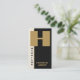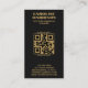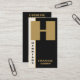 A modern and professional business card using black, gold, and ivory for a man or woman. Your initial on the front is to be personalized with your full name or business name. On the back is a QR code to add a "call to action." Also your name, title, address, phone, email, website, and social media information. Minimalist and professional to represent your brand or business. Fully editable-change the background and text color to reflect your branding.