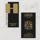 Modern Minimal Black Monogram Vertical QR code Business Card