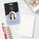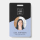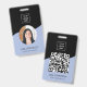 Modern minimal employee staff badge with a photo, QR code, company logo and employee's name and job title. You can easily customize it with your business details.