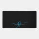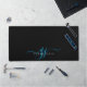 Modern Minimal Blue Script Monogram Black Desk Mat