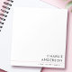 Modern notepad with your name and title in the bottom right corner separated by a light blush pink line. You can change fonts and colors, move and resize elements with the design tool.
