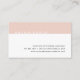 Eyecatching modern design has a minimalist feel in chic blush pink. Business cards feature your name in white on a band of blush millennial pink, with three lines of contact information on the lower right. Cards reverse to solid pale pink with your name or choice of custom text centered in modern black lettering.
