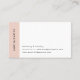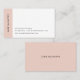Eyecatching modern design has a minimalist feel with a chic pop of color. Business cards feature your name along the left side in black on blush pink, with three lines of contact information to the right. Cards reverse to solid millennial pink with your name or choice of custom text centered in modern white lettering.