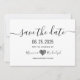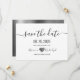 Modern, simple, minimalist, typography black and white wedding save the date invitation with chic heart and faux silver back.