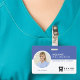 Professional, modern and minimal circle photo frame and logo horizontal photo identification badge. Customize with your photo, name, title, optional ID # and logo. The color can be changed to any color to suit your brand, simply click personalize and click to customize further. The reverse side features logo and address.