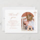 This beautiful modern minimal cross arch baby photo thank you card is a perfect choice for all couples looking for a modern and minimalist and chic card to thank their loved ones for the support during their special day. The simple and elegant design features a photo within an arched frame around which is placed the text in the classic typography, in a warm classic terracotta color. The side contains the space for your custom thank you message. Make it yours by using the "customize" button and replacing the template with your image and the text with your information. Perfect baptism thank you card for both a baby girl and a baby boy!