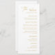 Elevate your wedding dining experience with this stunning, modern, minimalist, and elegant calligraphy script wedding menu. Crafted in classic white and gold colors, this menu is the perfect way to present your culinary offerings to your guests. The elegant calligraphy script highlights your chosen menu items, including appetizers, main course, desserts, and drinks, while the minimalist design ensures that your menu is easy to read and visually appealing.
