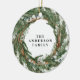 Modern minimal foliage wreath peace script holiday ceramic ornament