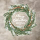 Modern minimal foliage wreath script Merry Christmas holiday Christmas floor decor decal. Hand painted eucalyptus, pine tree branch, minimal foliage and modern rustic rattan wreath give this holiday card a luxurious feel. In classy greens, browns, grays and dusty blue.