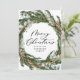Modern minimal foliage wreath script Christmas Holiday Card