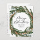 Modern minimal foliage wreath script Christmas Holiday Postcard