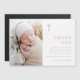 Modern Minimal Gold Cross Photo Baptism Thank You