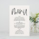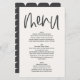 Modern minimal graphic handwritten monochrome wedding menu. Modern on trend typography design. Part of a collection, colors can be changed to suit your color scheme.
