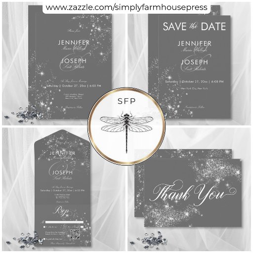 Modern Minimal Gray & White Glam Diamonds WeddingDesigned by Kathe Santillo