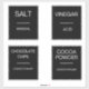 These minimal labels for your herbs and spices will have your pantry looking tidy, well organised and modern. Inspired by the periodic table of the elements you'll find the right spice in no time. Each spice is identified by a unique two letter combination.