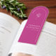 Bold yet delicate, this modern wedding bookmark combines a vibrant magenta background with clean white text and botanical detailing—perfect for couples who love a fresh, artistic touch.