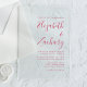 This simple modern wedding invitation features magenta text on your choice of a clear or frosted background. Add the names of the bride and groom in stylish handwriting calligraphy and the details in sans serif font.