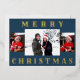 Modern Minimal Merry Christmas Family Photo, Blue Foil Holiday Card