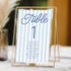 Modern Minimal Minimalist Blue Stripes Wedding Table Number